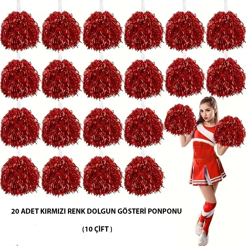 Kırmızı gümüş metalik dolgun gösteri ponponu seti; dans, spor organizasyonları, tezahürat gösterileri, sahne performansları ve parti konseptleri için özel olarak tasarlanmıştır. Parlak metalik yapısı sayesinde ışık altında son derece dikkat çekici bir görünüm sunar.