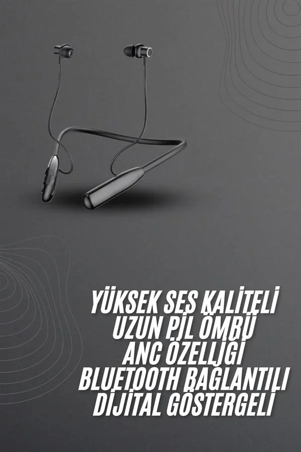 Boyun Askılı Kablosuz Bluetooth Kulaklık – Aktif Gürültü Önleme, LCD Ekranlı