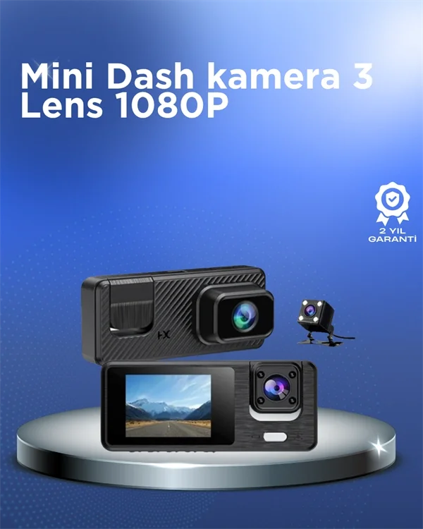 360° Kapsama Sahip Full HD Araç Kamerası 3’lü Kayıt Gece Görüşlü DashCam
