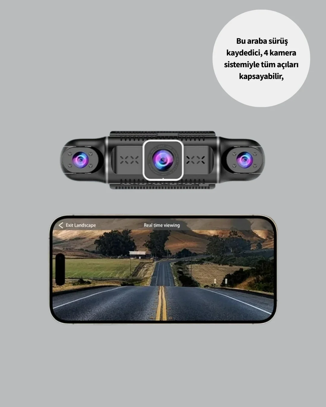1080P Üç Kameralı Araç Kamerası Wi-Fi Destekli Park Modu ve G-Sensörlü