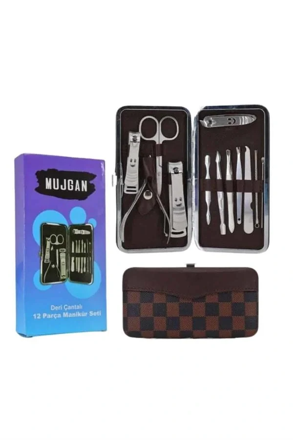 12 Parça Manikür Pedikür Seti Özel Deri Çanta El Ayak Bakımı Akne ve Sivilce Temizleme
