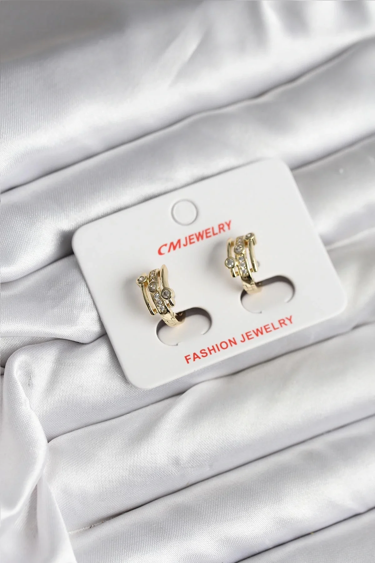 14K Gold Renk Kaplama Yarım Halka Zirkon Taşlı CM Kadın Küpe