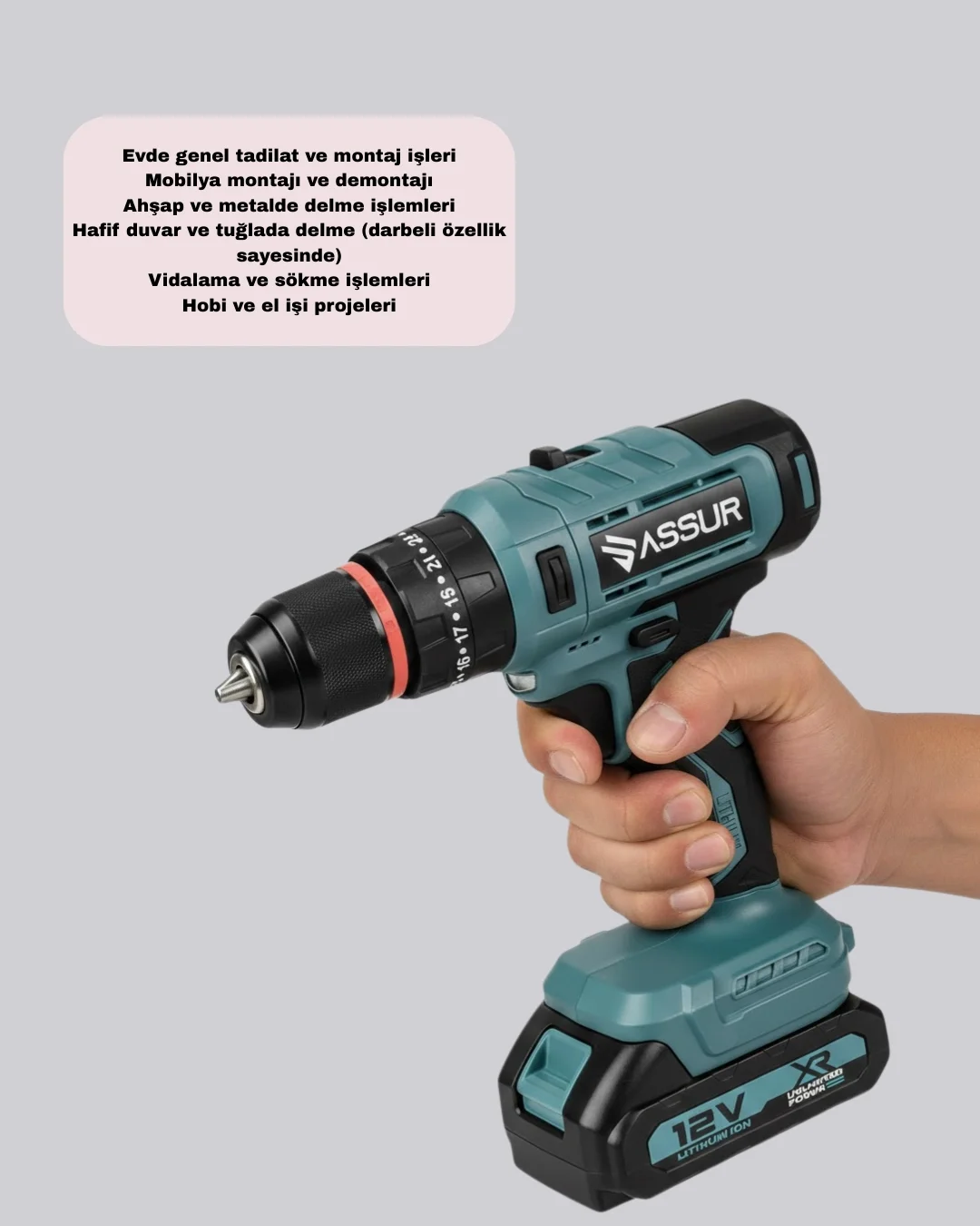 Güçlü Şarjlı Matkap Vidalama Çift Batarya
