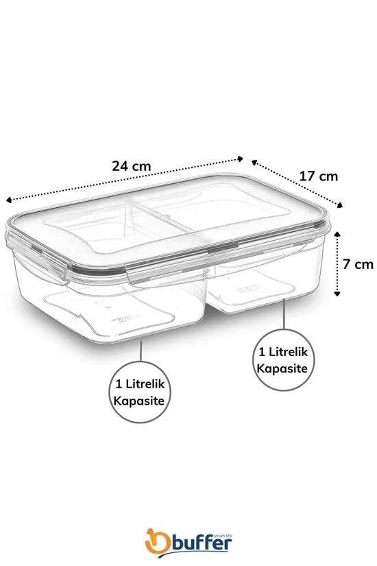 2 Bölmeli Sızdırmaz Contalı Kilitli Kapaklı 1 Litre Erzak Saklama Kabı -LC505 (5047)