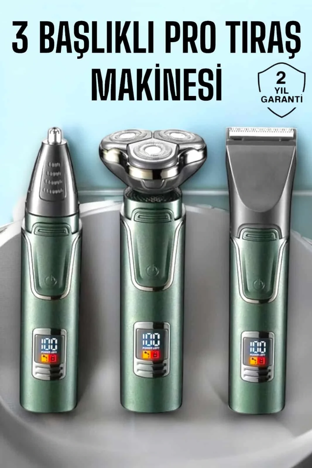 3 Başlıklı Profesyonel Saç ve Sakal Bakım Seti Vücut, Burun ve Kulak Tüy Alma