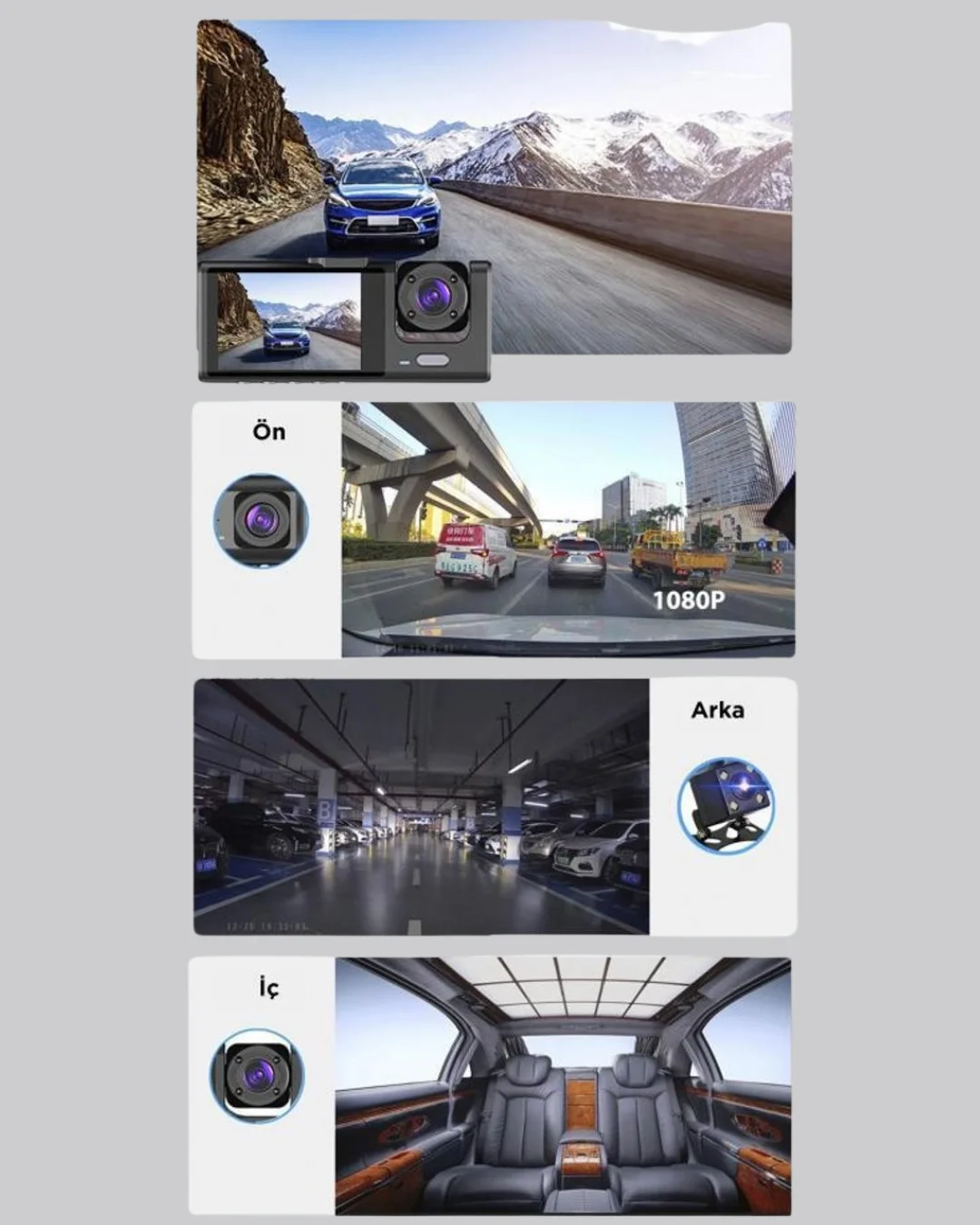 3 Kameralı Araç İçi Kayıt Cihazı Suya ve Toza Dayanıklı Tasarım