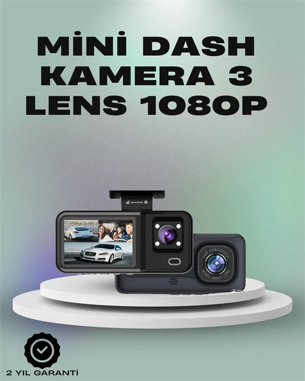 360° Kapsama Sahip Full HD Araç Kamerası 3’lü Kayıt Gece Görüşlü DashCam