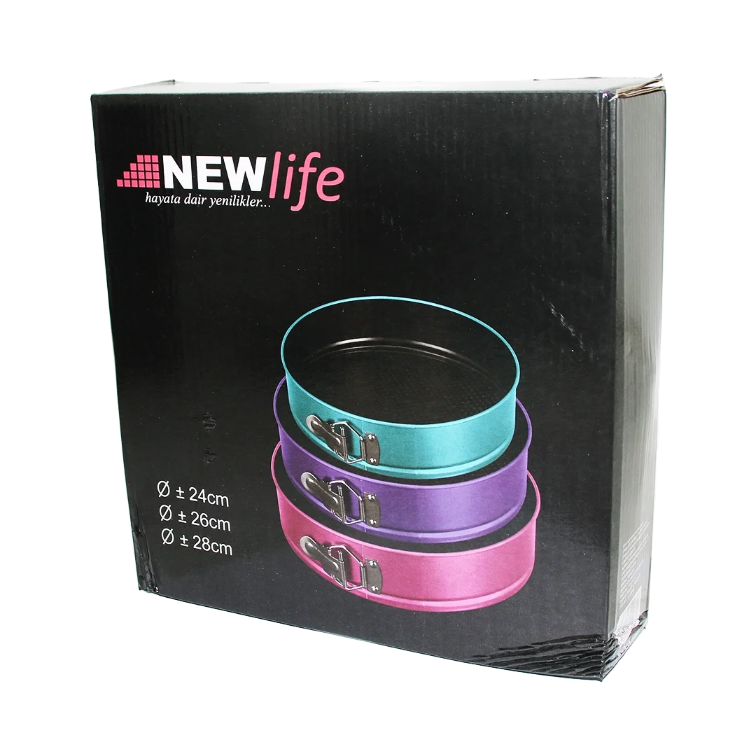 3 PARÇA YUVARLAK - RENKLİ KELEPÇELİ METAL KEK KALIP 24-26-28CM