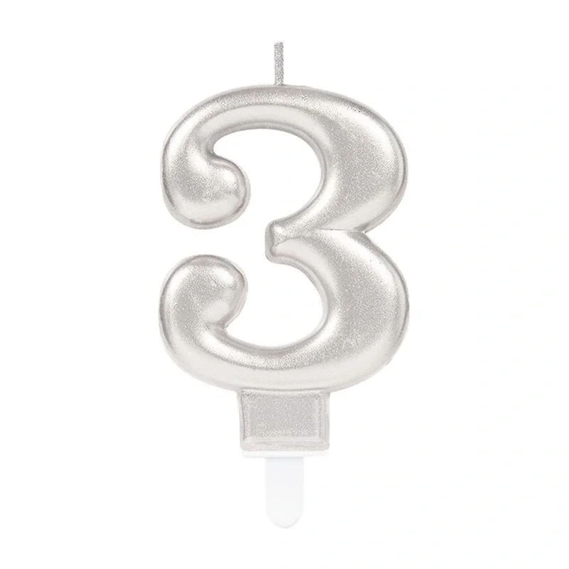 3 Rakam Mum Gümüş Renk (5047)