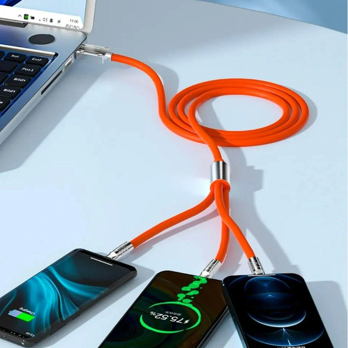 3 Şarj Aleti 1 Arada Çinko Alaşım Hızlı Şarj Kablosu Turuncu
