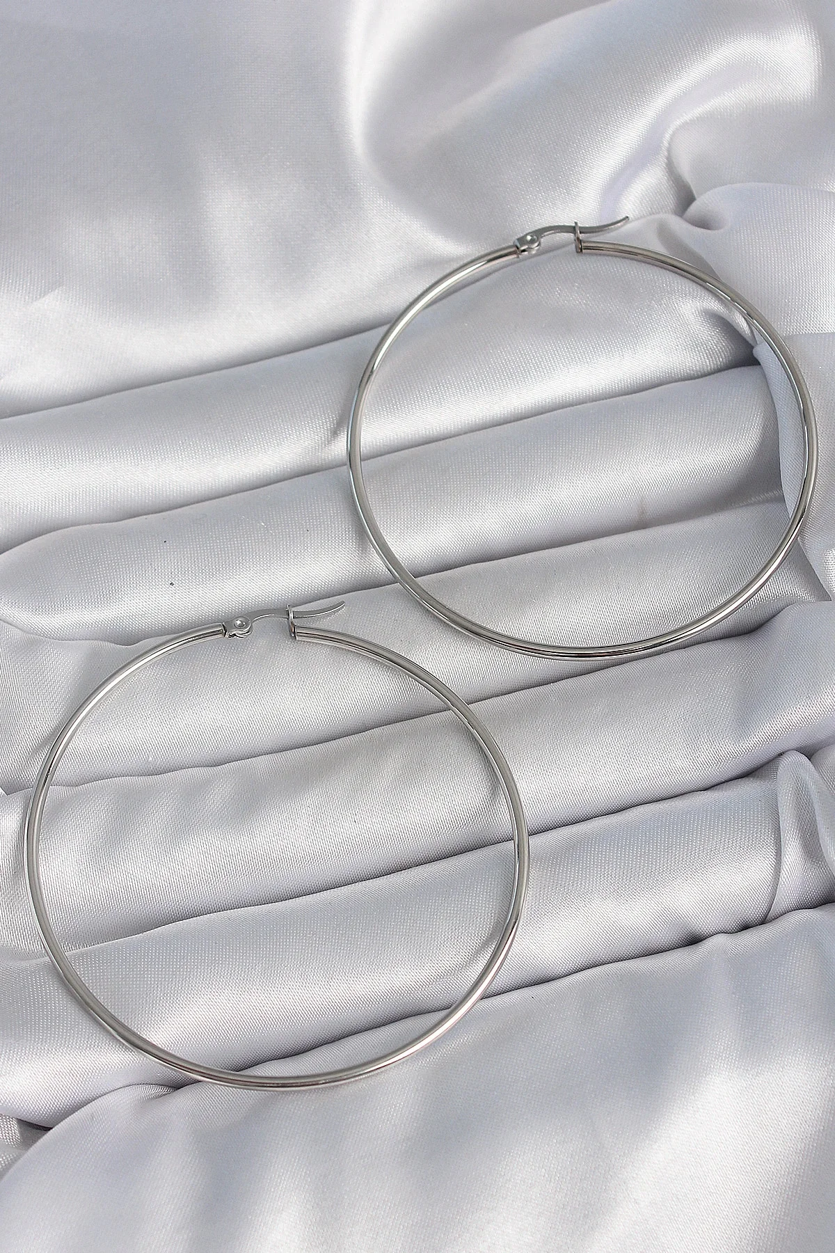 316 Çelik Gümüş Renk 63 mm Halka Model Kadın Küpe