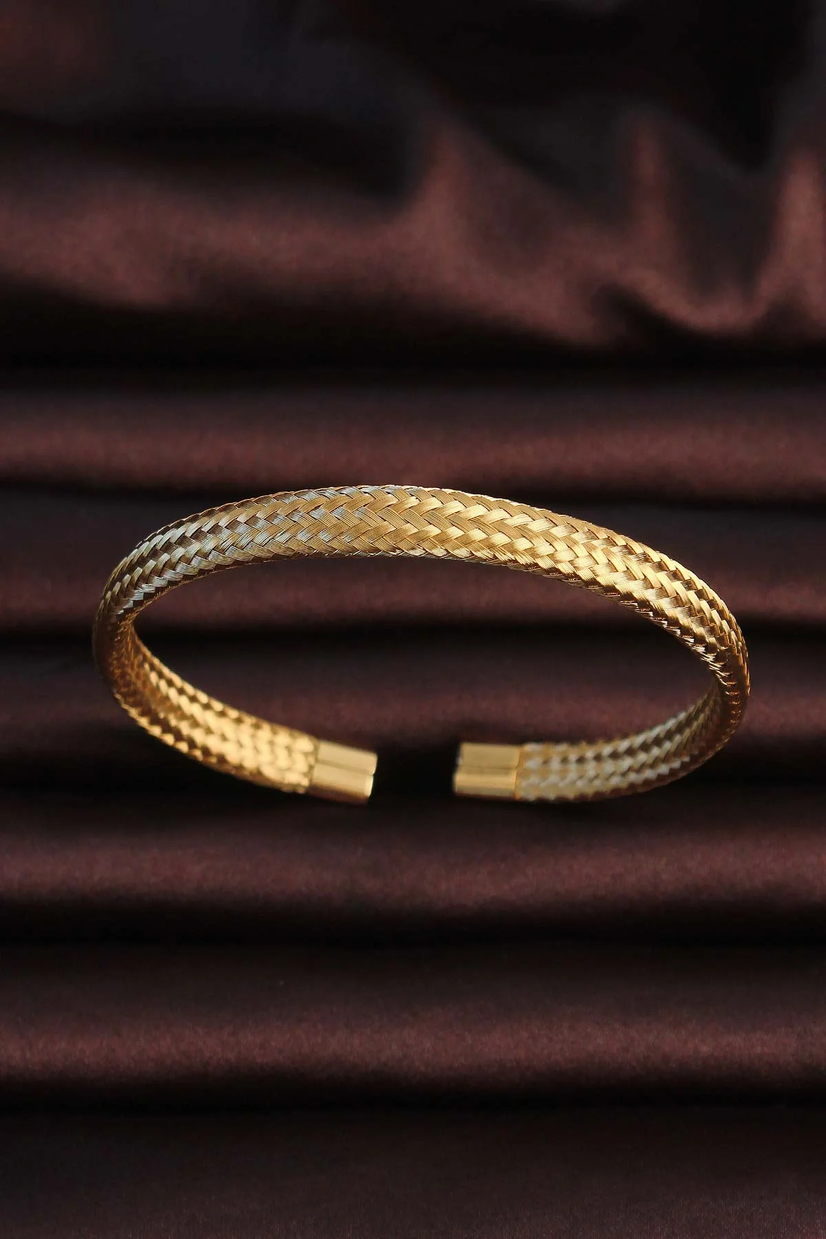 316L Çelik Altın Renk Hasır Görünüm Erkek Bileklik