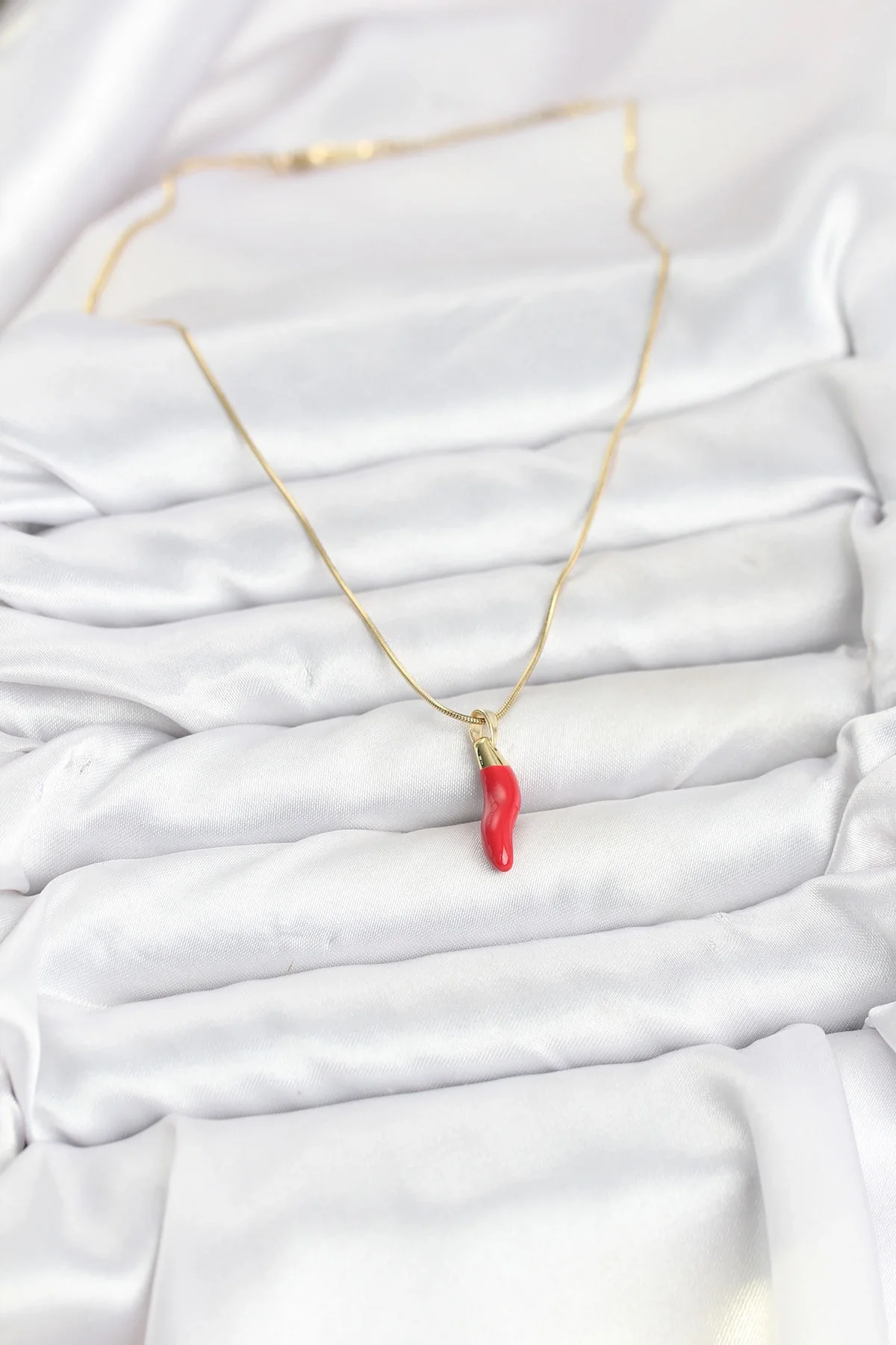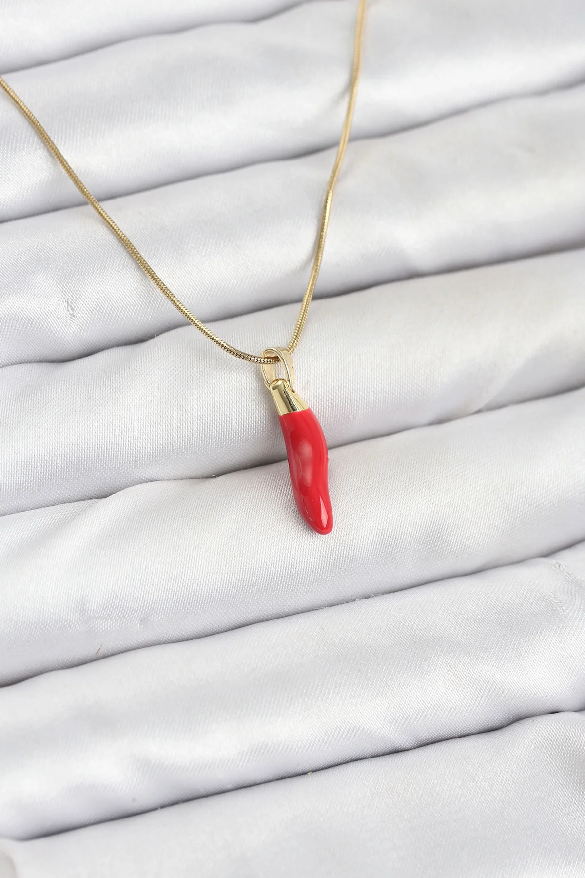 316L Çelik Gold Renk Kapya Kırmızı Biber Model Kadın Kolye