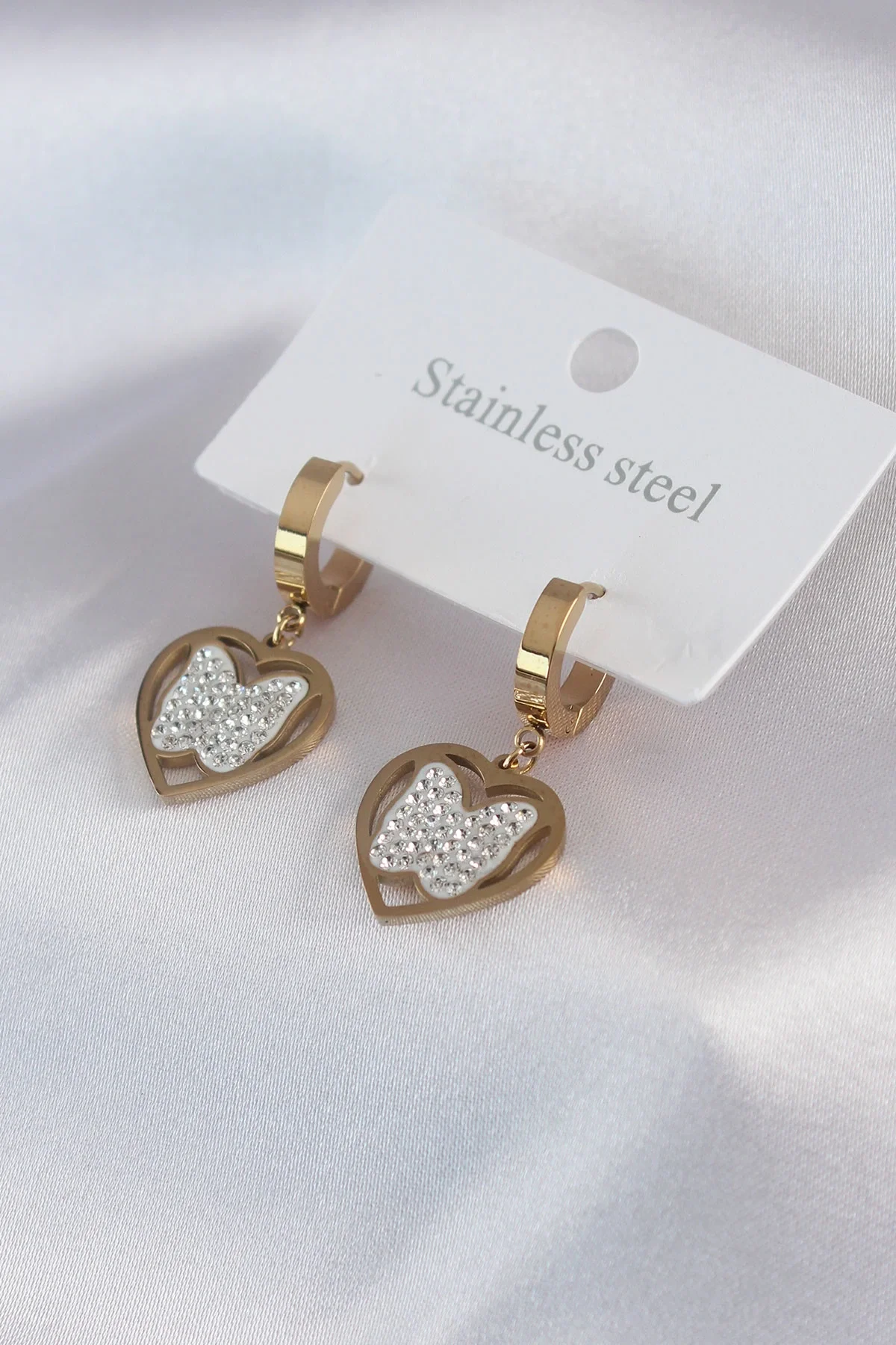 316L Çelik Gold Renk Kelebek Model Zirkon Taş Detay Kadın Küpe