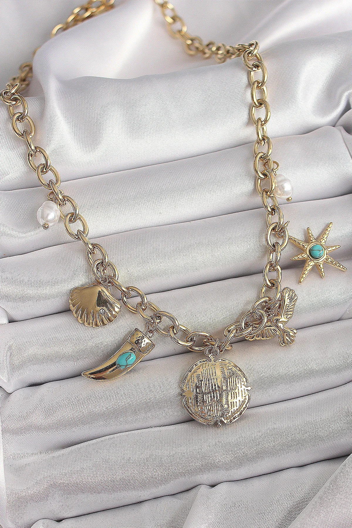 316L Çelik Gold Renk Zincir Sallantılı Çoklu Figür Model Kadın Kolye