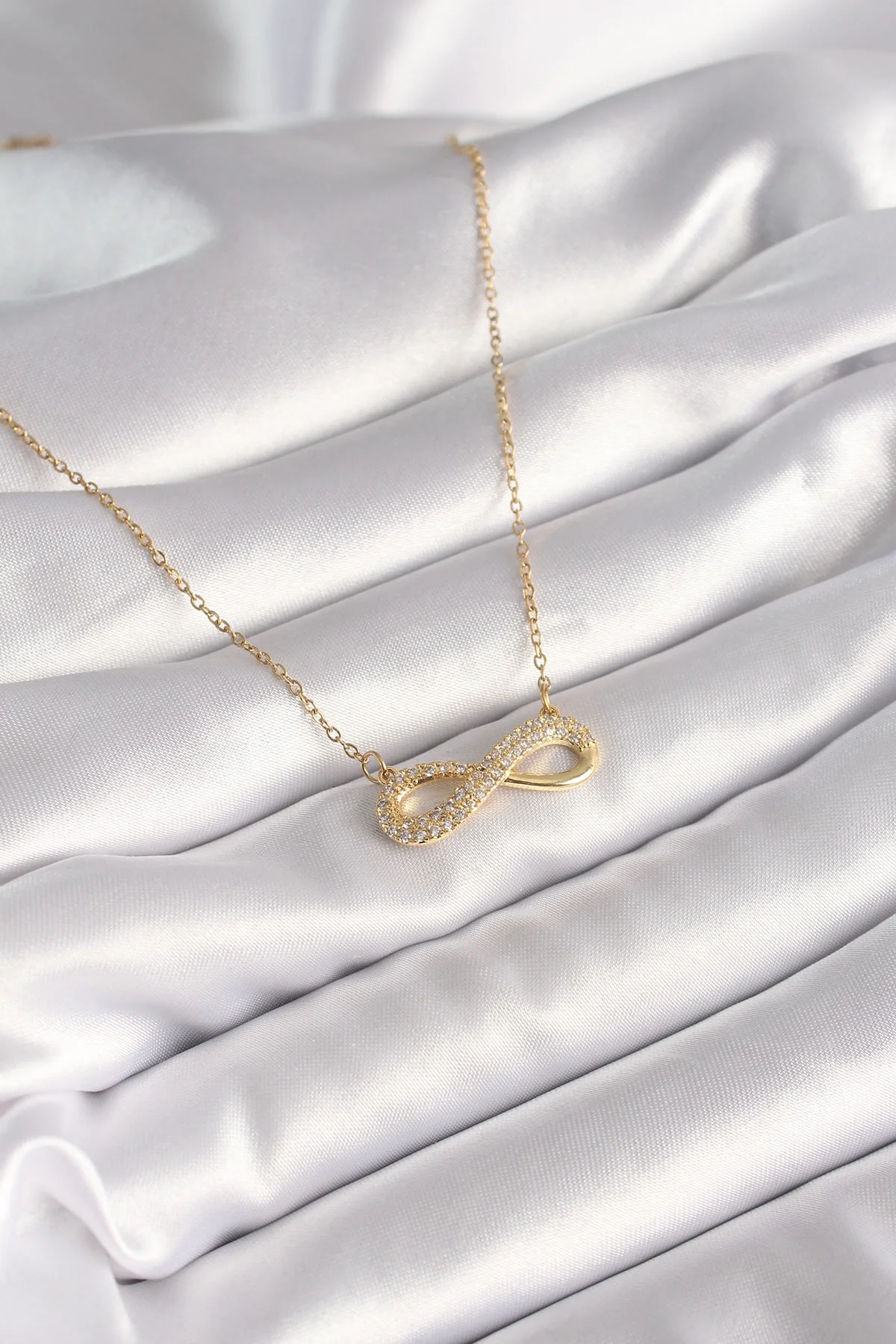 316L Çelik Gold Renk Zincir Zirkon Taşlı Sonsuzluk Model Kadın Kolye