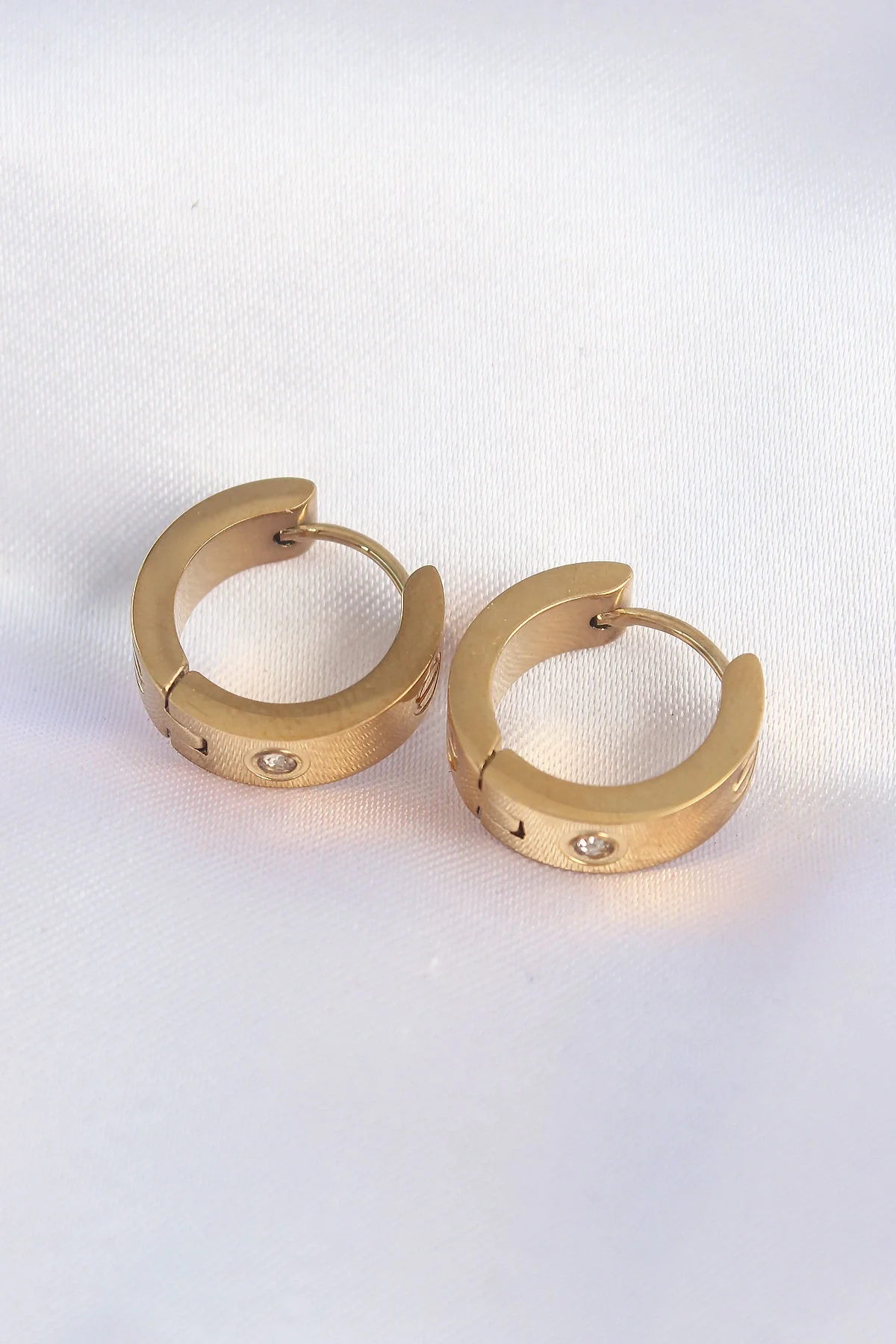 316L Çelik Gold Renk Zirkon Taşlı Minimal Model Halka Küpe
