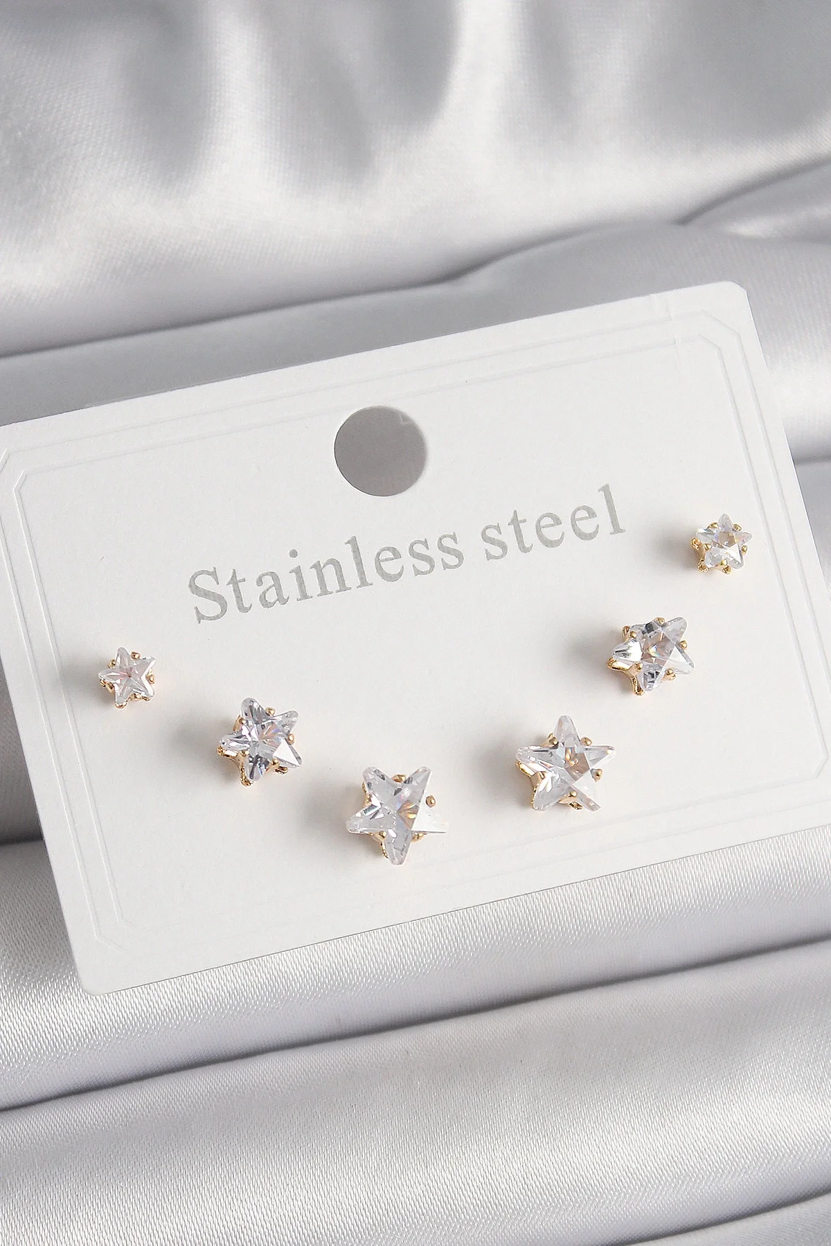 316L Çelik Gold Renk Zirkon Taşlı Yıldız Model Kadın Küpe Seti