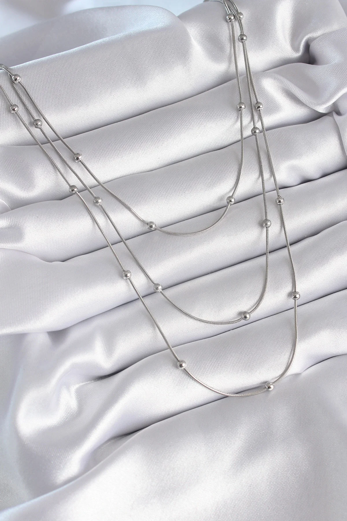 316L Çelik Gümüş Renk 3'lü Topçuk Detay Kadın Kolye