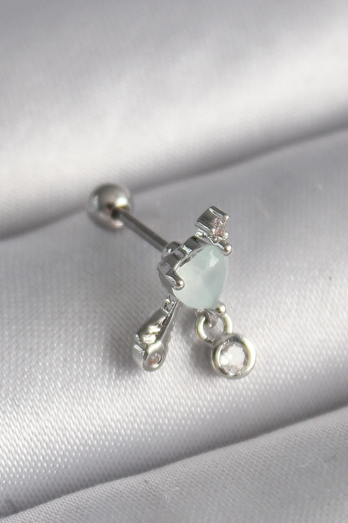 316L Çelik Gümüş Renk Dal Model Zirkon Taş Detaylı Tragus Piercing