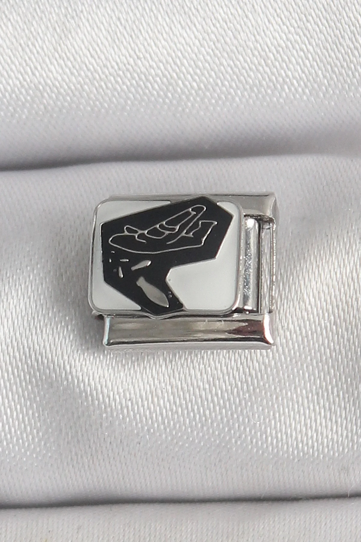 316L Çelik Gümüş Renk Beyaz Siyah Uçak İşlemeli Portre Model Nomination Charm