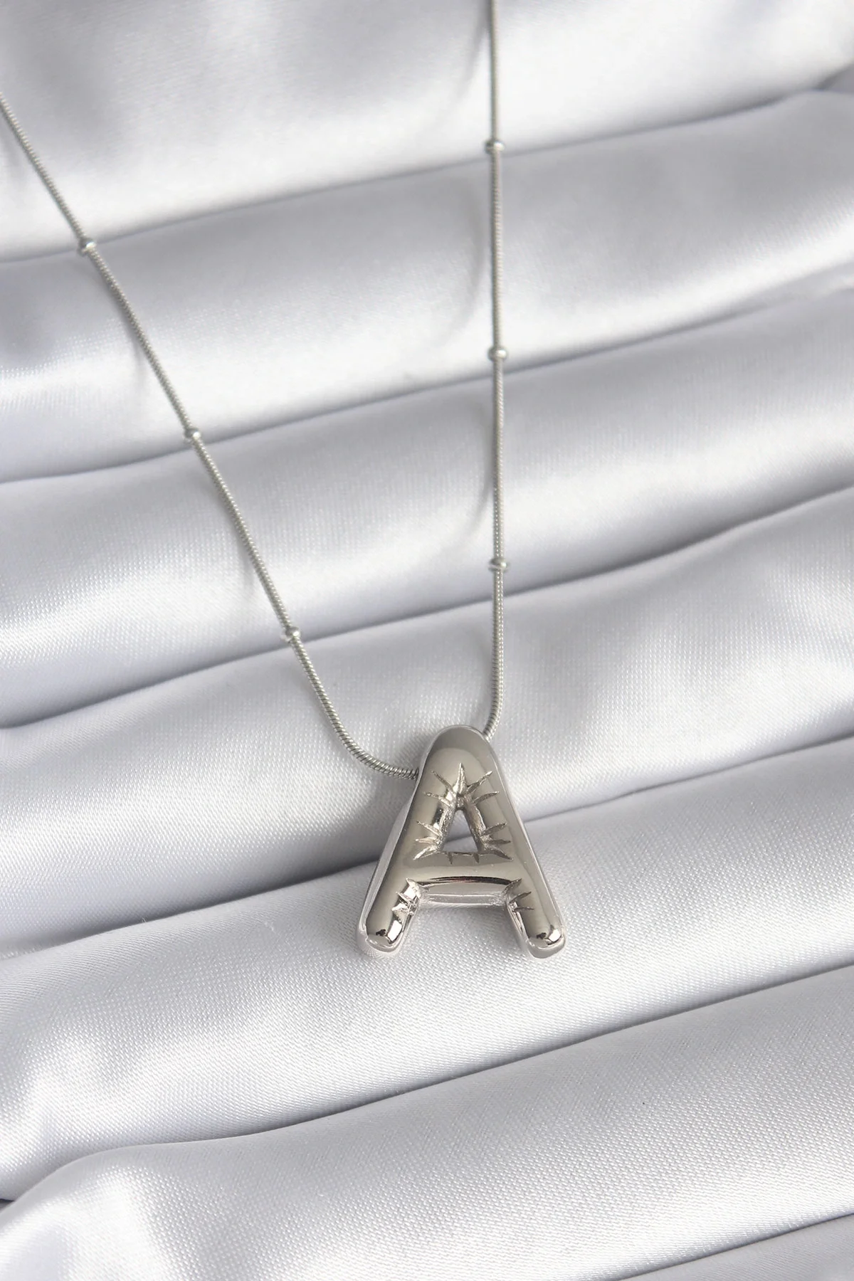 316L Çelik Gümüş Renk Bubble "A" Harf Model Kadın Kolye