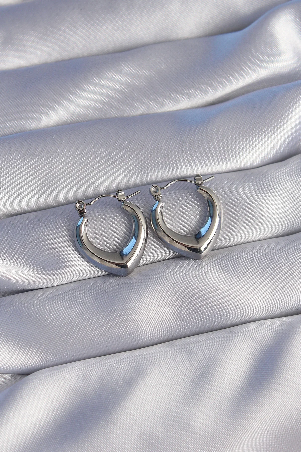 316L Çelik Gümüş Renk İçi Oval Tasarımlı Küpe