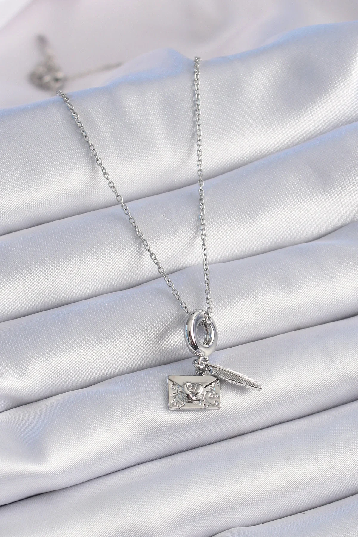 316L Çelik Gümüş Renk Kalp Detay Mektup Figür Charm Model Kadın Kolye