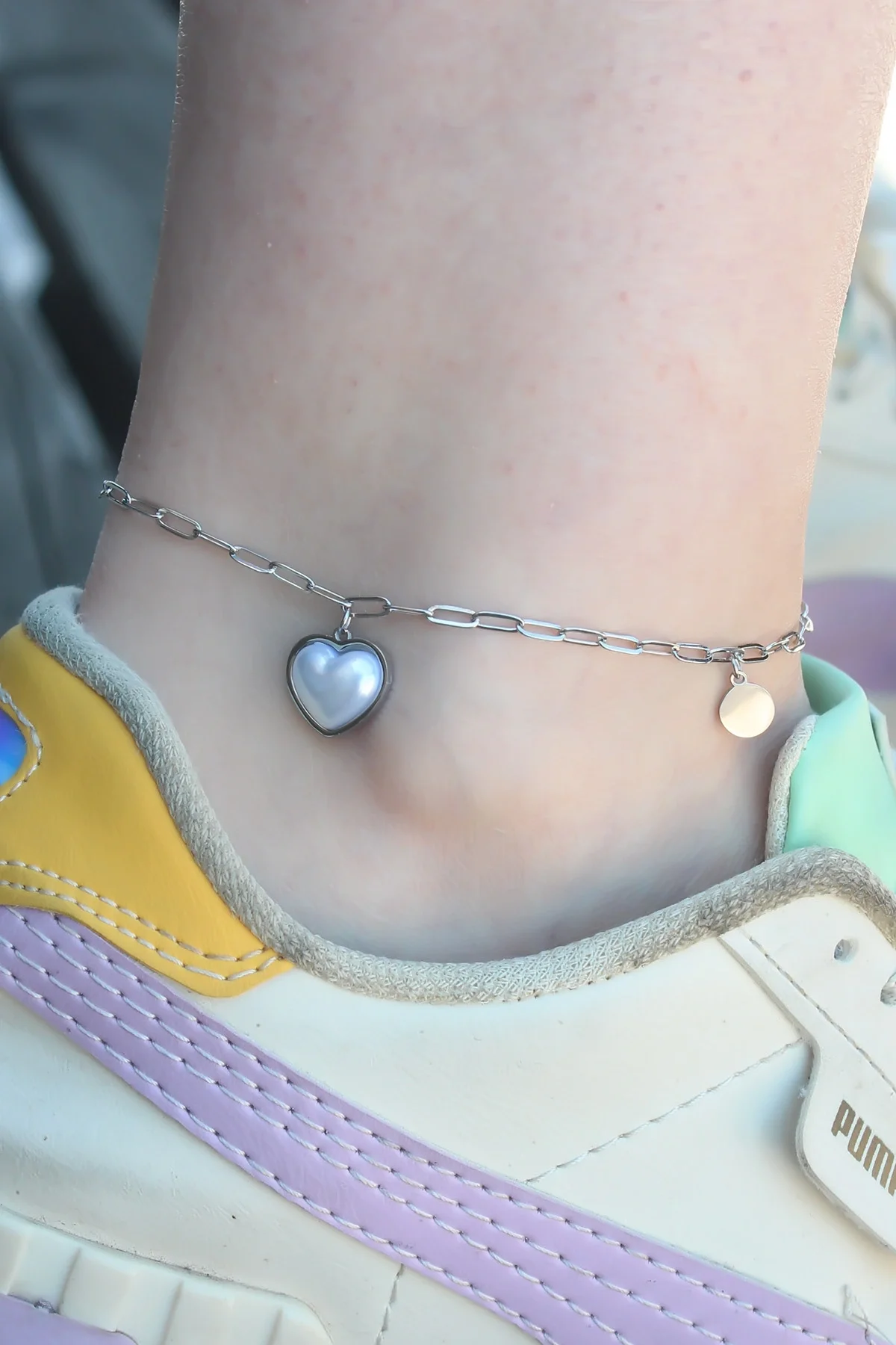 316L Çelik Gümüş Renk Kalp Figür Kadın Halhal