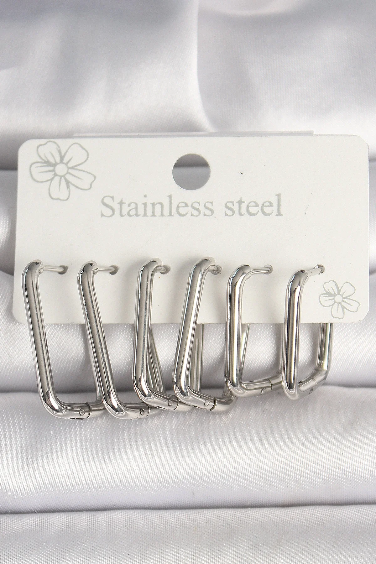 316L Çelik Gümüş Renk Kare Model Kadın Küpe Seti