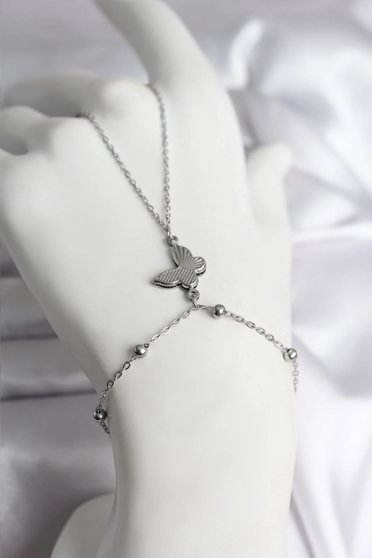 316L Çelik Gümüş Renk Kelebek Model Kadın Şahmeran