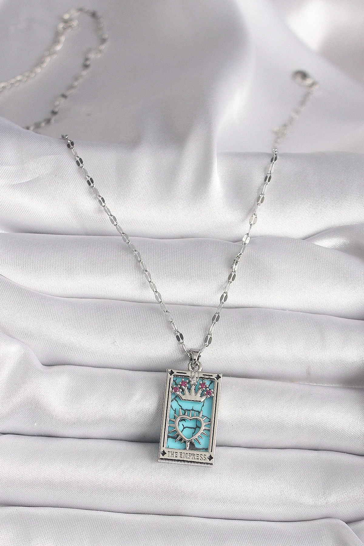 Pirinç Gümüş Renk Minimal Charmlı Kadın Kolye