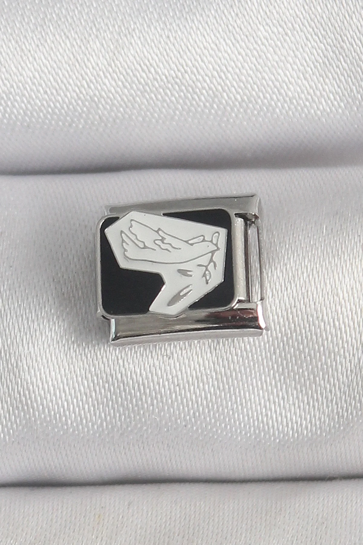 316L Çelik Gümüş Renk Siyah Beyaz Kuş İşlemeli Nomination Charm