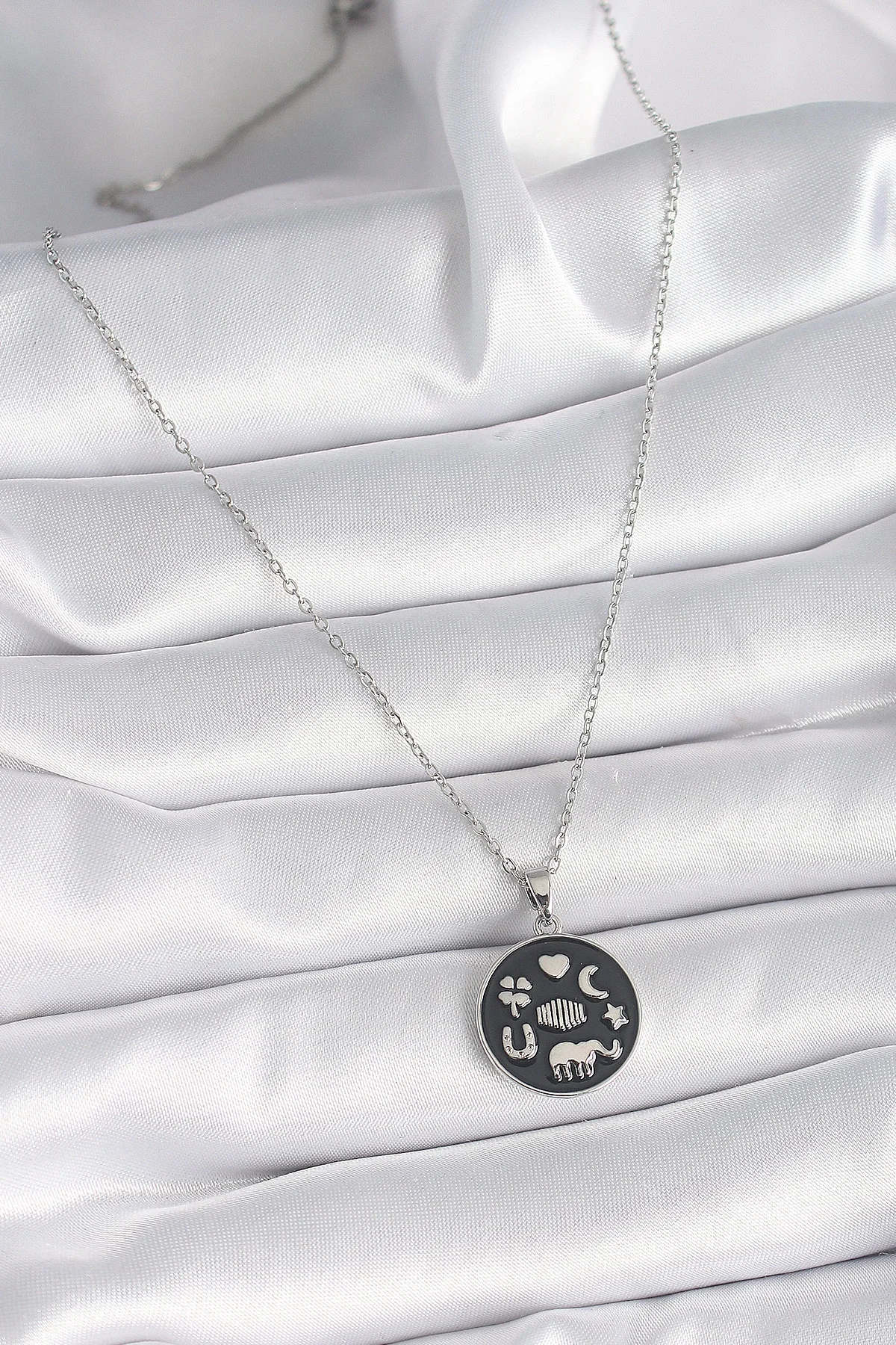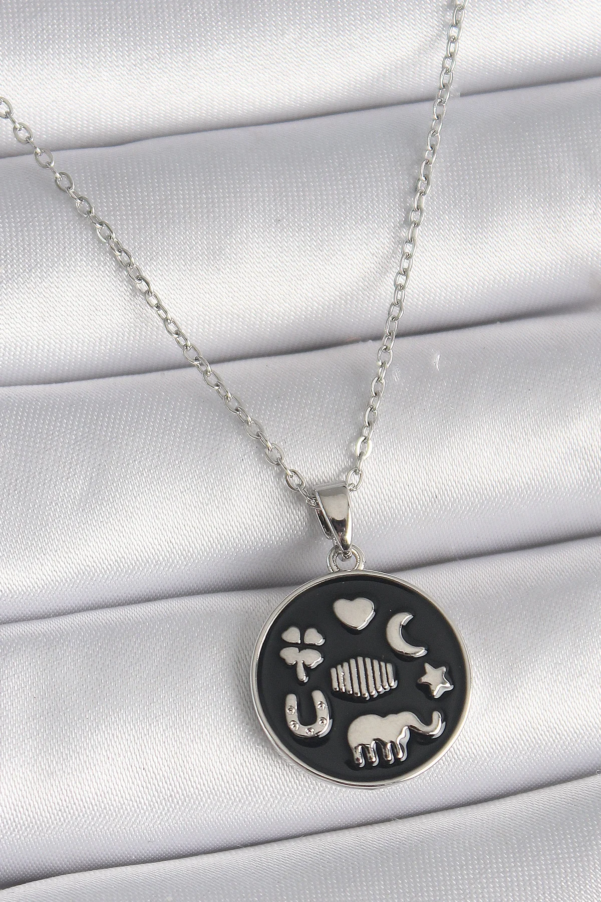 316L Çelik Gümüş Renk Siyah Renk Şans Kolyesi