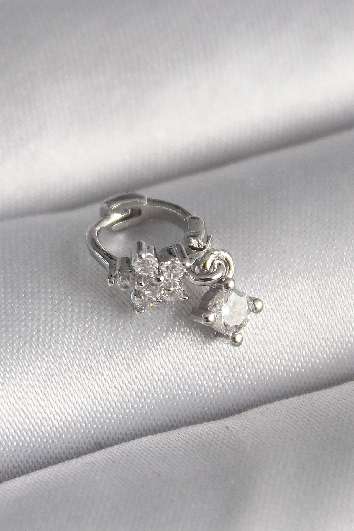 316L Çelik Gümüş Renk Zirkon Taşlı Çiçek Model Sallantı Detay Tragus Piercing