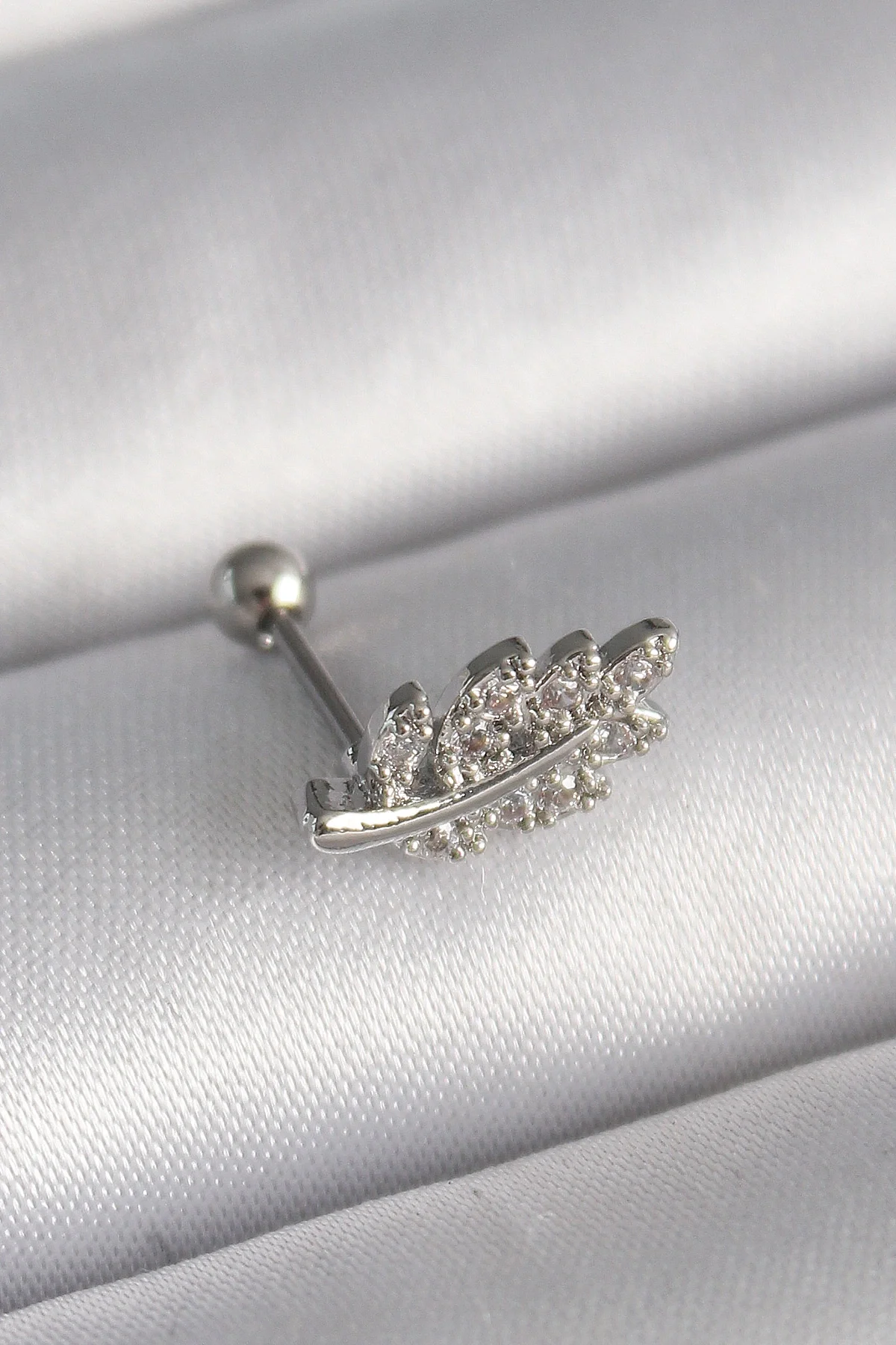 316L Çelik Gümüş Renk Dal Model Zirkon Taş Detaylı Tragus Piercing