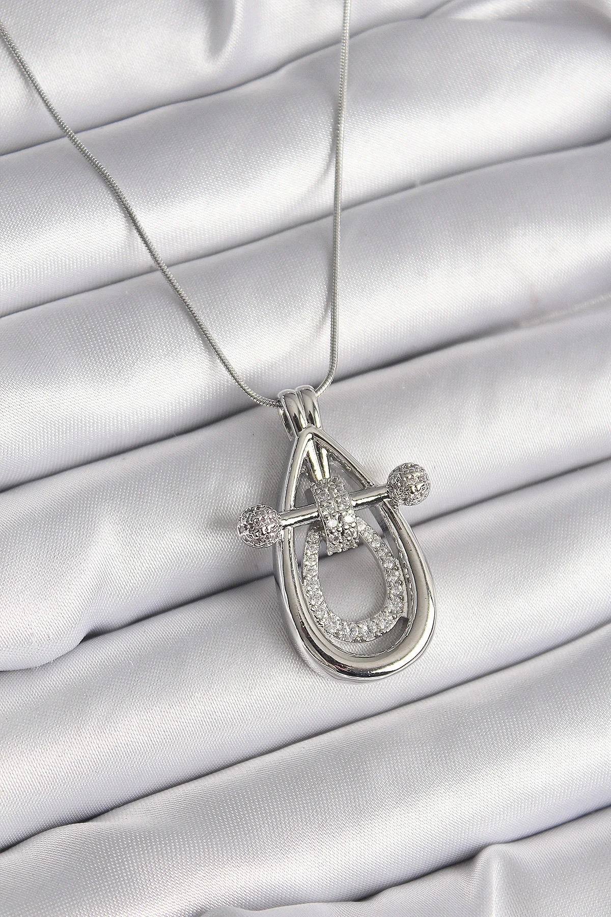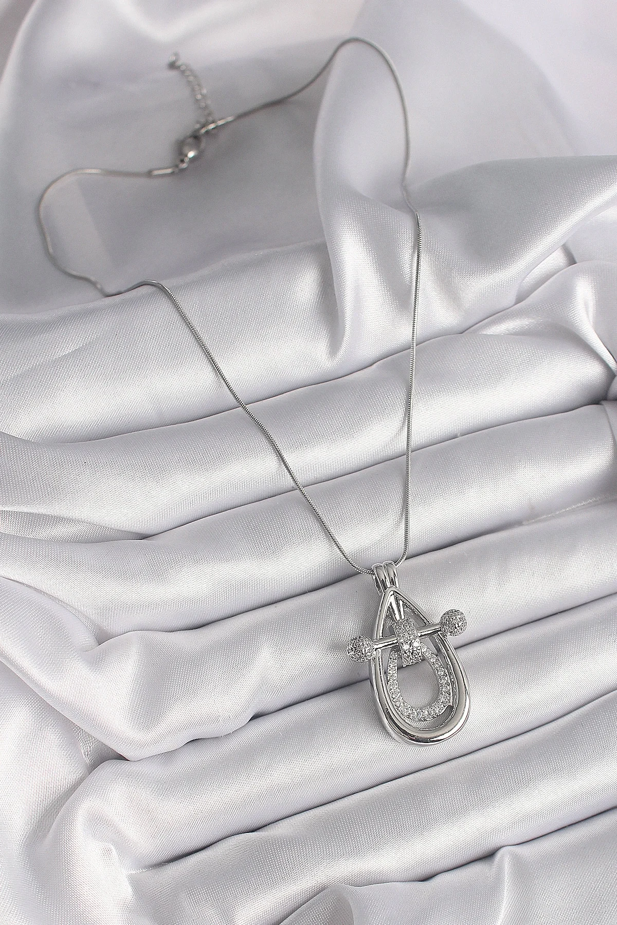 316L Çelik Gümüş Renk Zirkon Taşlı Damla Model Kadın Kolye