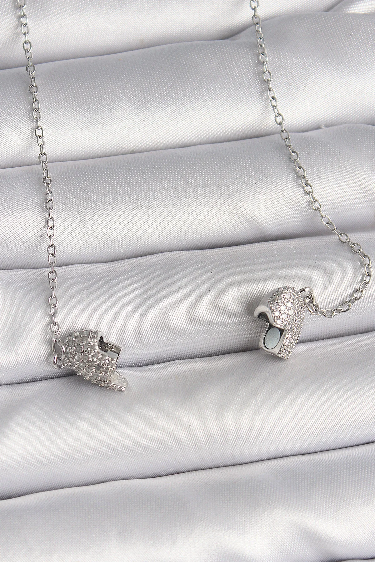 316L Çelik Gümüş Renk Zirkon Taşlı Mıknatıslı Kalp Model Kadın Kolye