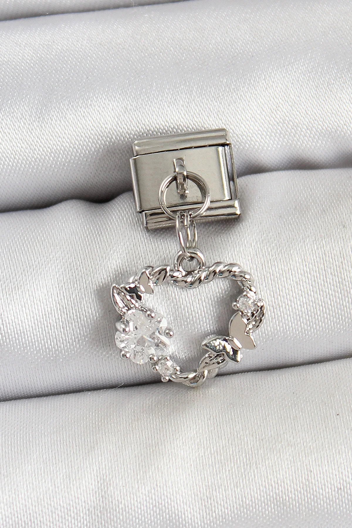 316L Çelik Sallantılı Zirkon Taşlı Kalp Model Gümüş Renk Nomination Charm