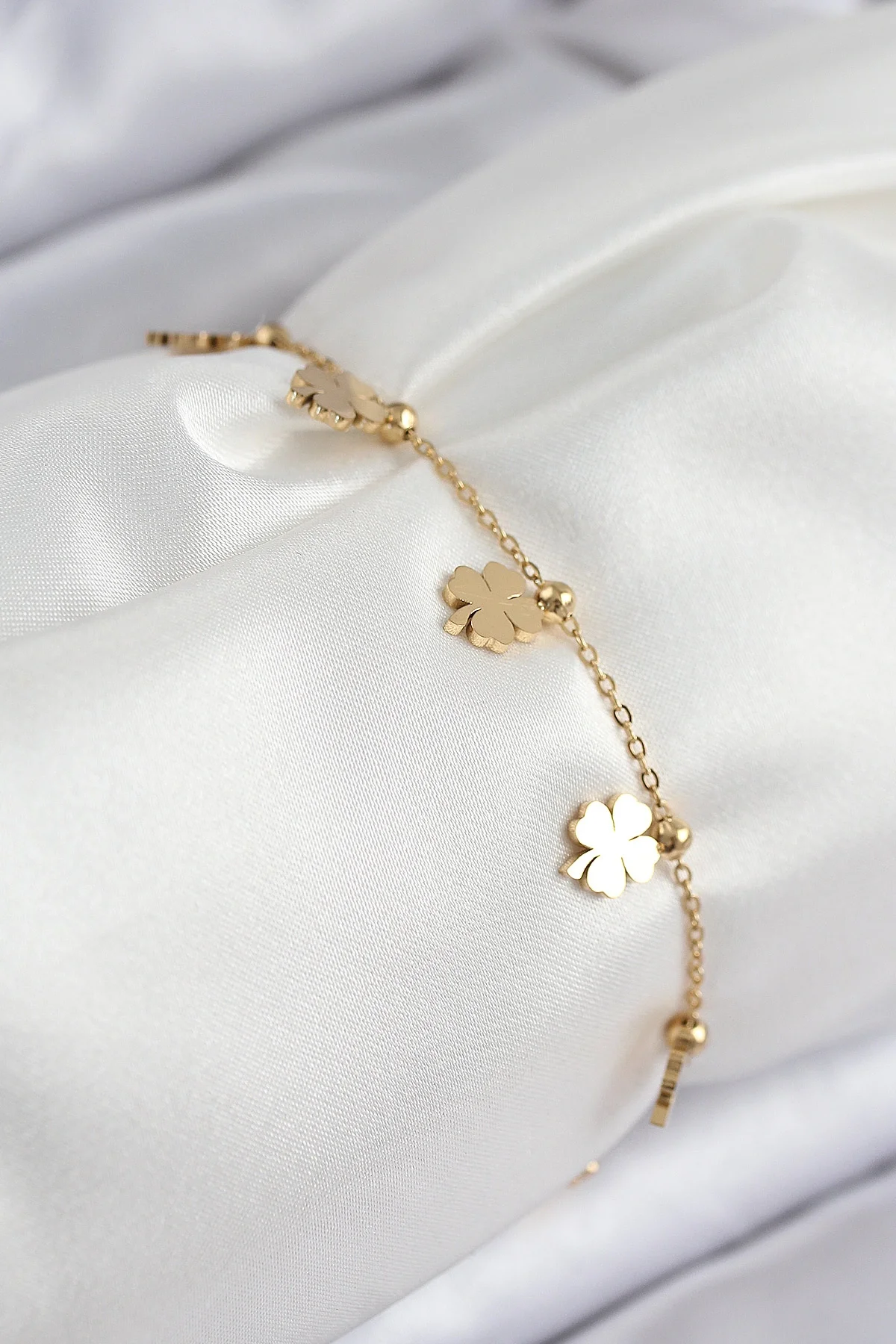 316L Çelik Sıralı Yonca Model Gold Renk Kadın Bileklik