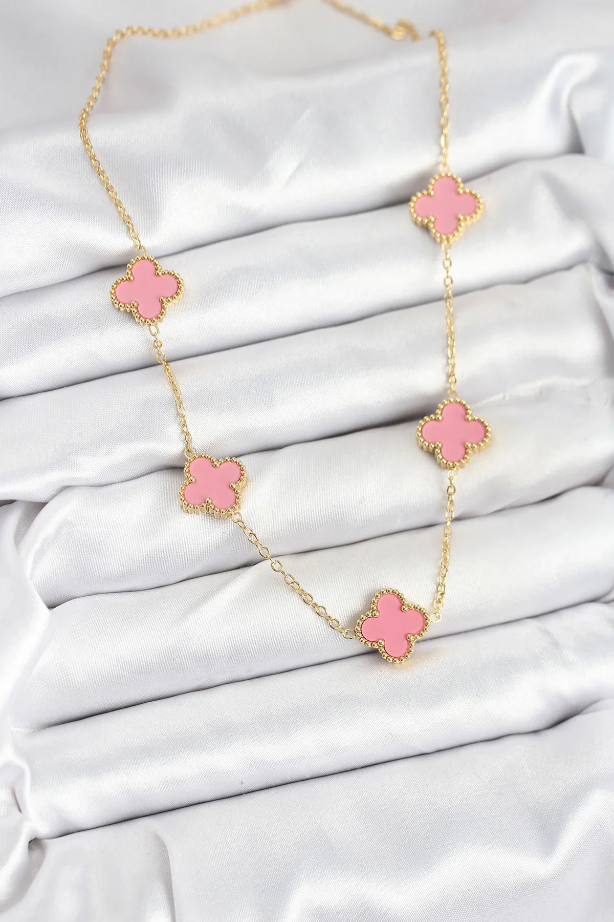 316L Çelik Zincir Gold Pembe Renk Yonca Kadın Kolye