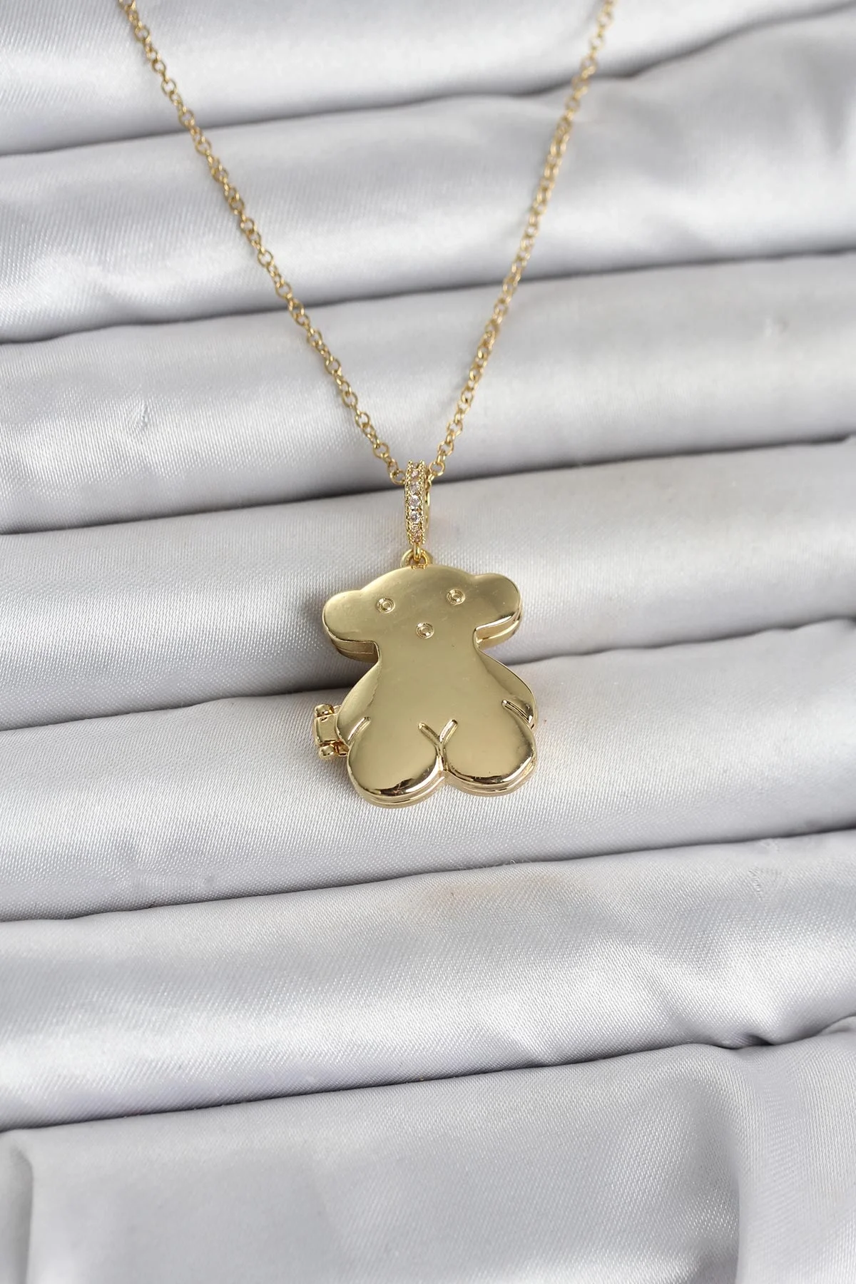 316L Çelik Zincir Gold Renk Ayıcık Model Açılabilir Kadın Kolye