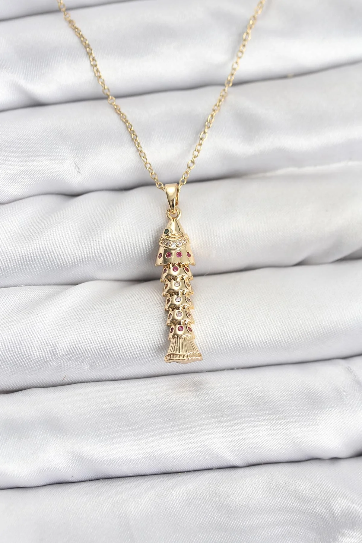 316L Çelik Zincir Gold Renk Balık Model Zirkon Taşlı Kadın Kolye