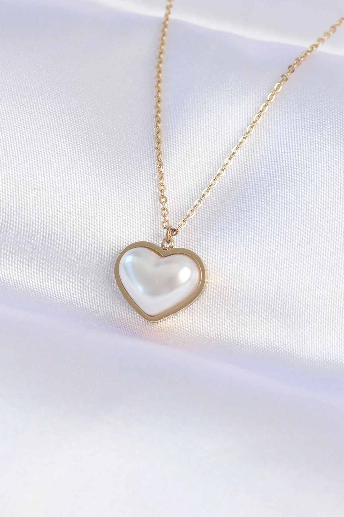 Kalp Detaylı Gold Renk Pirinç Kadın Kolye