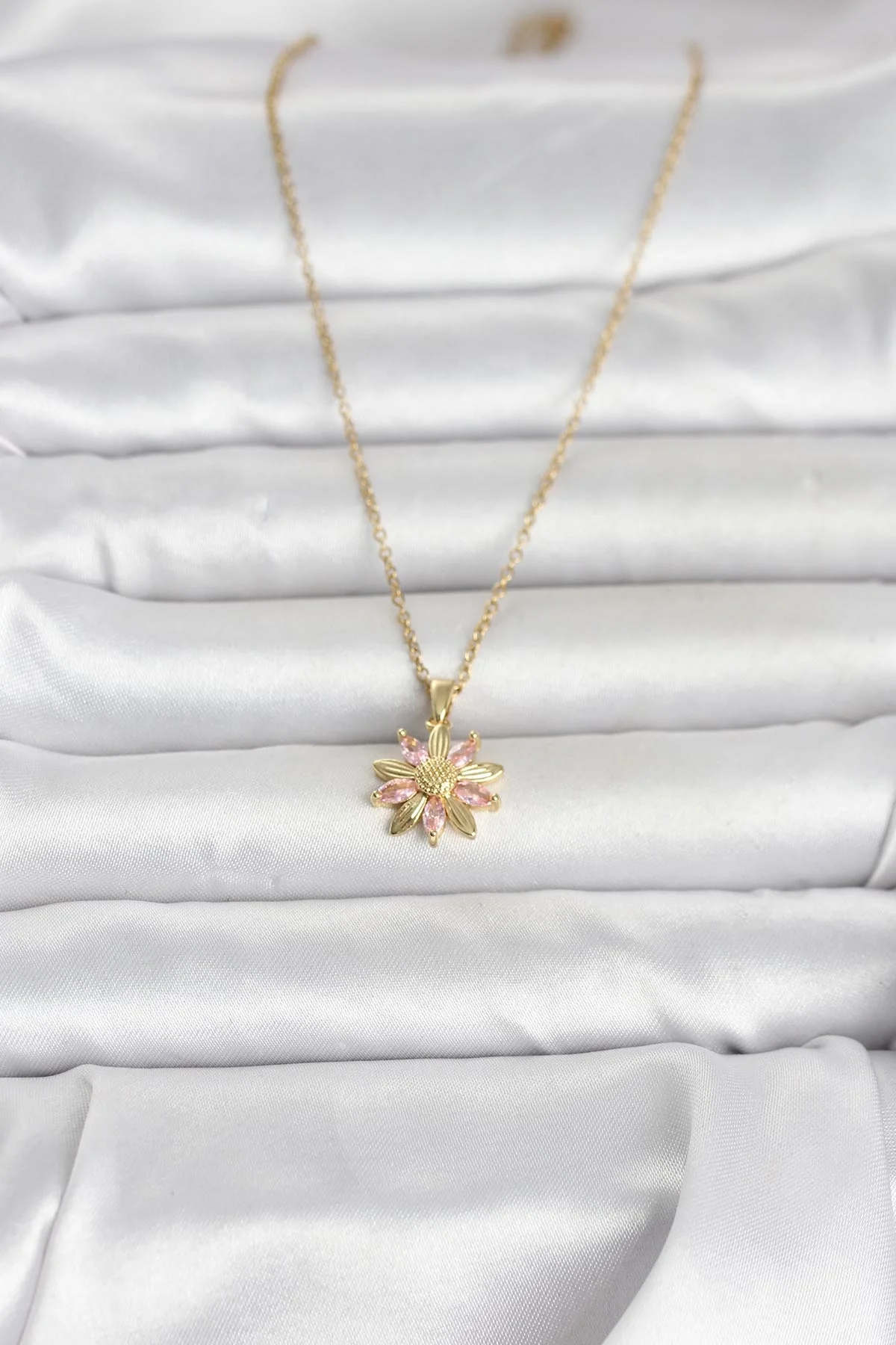 316L Çelik Zincir Gold Renk Pembe Papatya Model Kadın Kolye