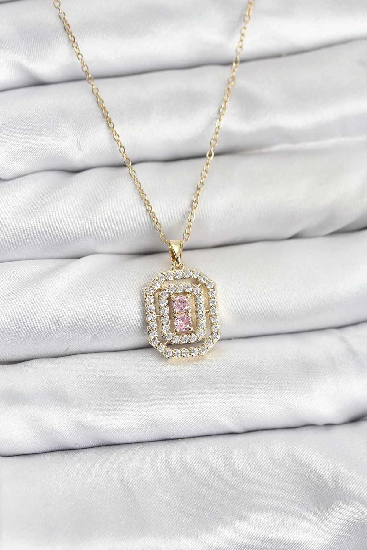 316L Çelik Zincir Gold Renk Plaka Model Zirkon Taşlı Kadın Kolye