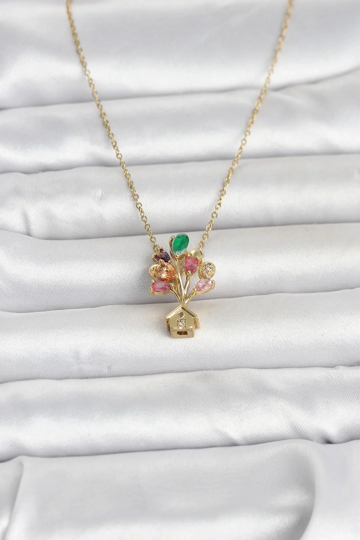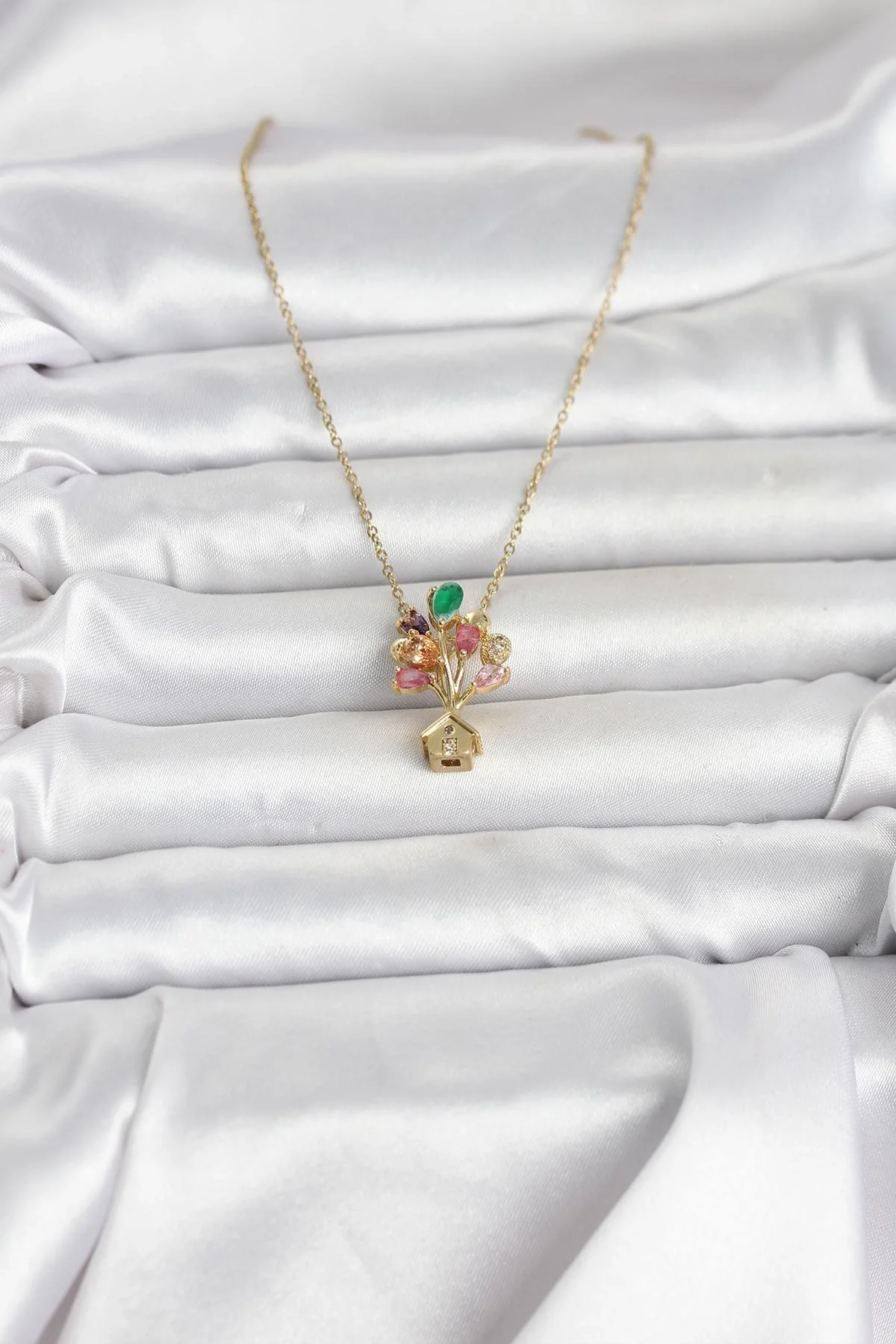 316L Çelik Zincir Gold Renk Uçan Balon Ev Figür Kadın Kolye