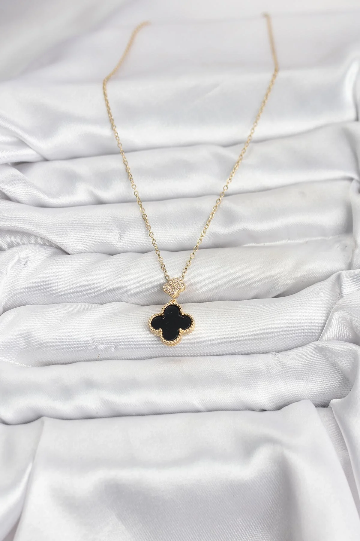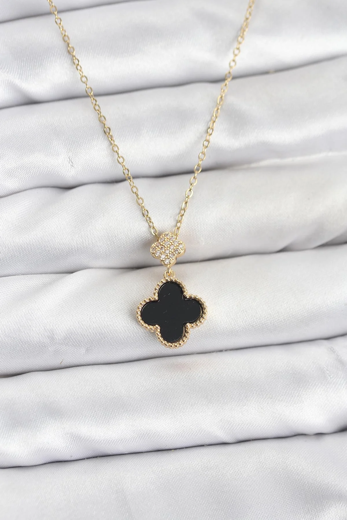 316L Çelik Zincir Gold Renk Yonca Model Zirkon Taşlı Kadın Kolye