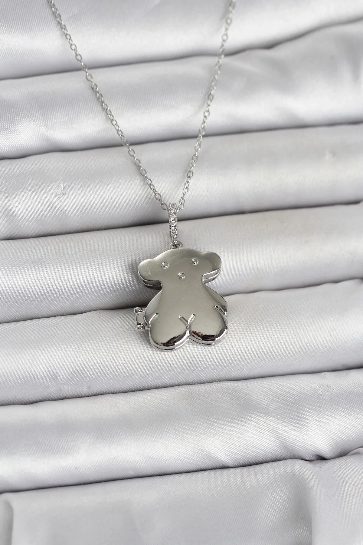 316L Çelik Zincir Gümüş Renk Ayıcık Model Açılabilir Kadın Kolye