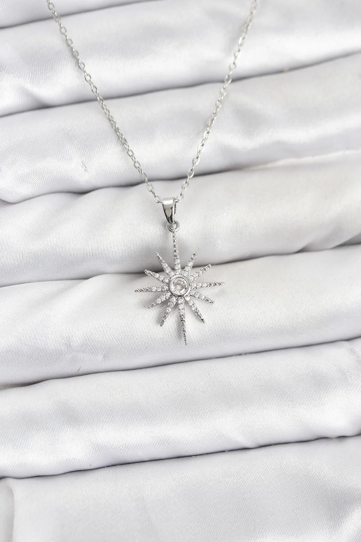 316L Çelik Zincir Gümüş Renk Kutup Yıldızı Model Zirkon Taşlı Kadın Kolye